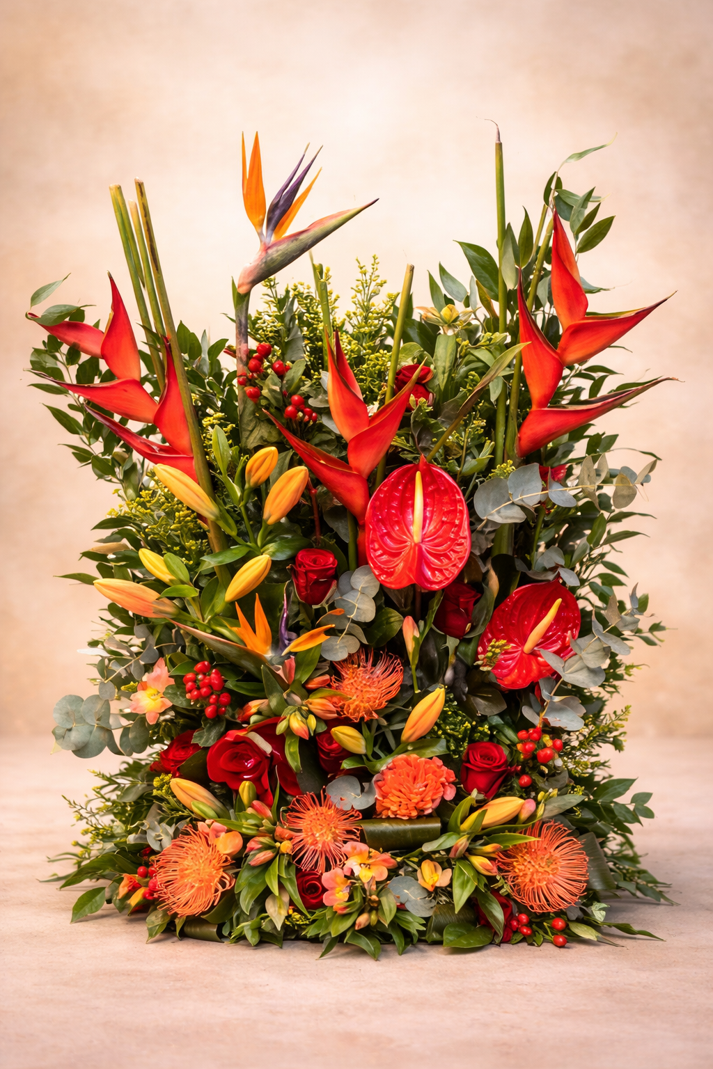 Montage de fleurs naturelles en hauteur exotique